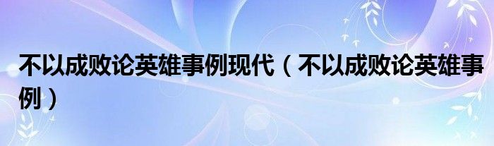 关于不以成败论英雄事例现代,不以成败论英雄事例这个很多人还不知道,今天菲菲来为大家解答以上的问题,现在让我们一起来看看吧!