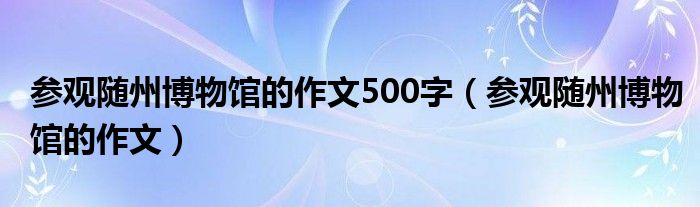 关于参观随州博物馆的作文500字,参观随州博物馆的作文这个很多人还不知道,今天菲菲来为大家解答以上的问题,现在让我们一起来看看吧!