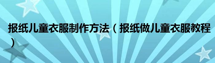 关于报纸儿童衣服制作方法,报纸做儿童衣服教程这个很多人还不知道,今天菲菲来为大家解答以上的问题,现在让我们一起来看看吧!