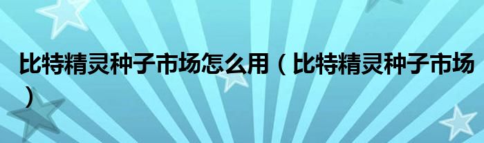关于比特精灵种子市场怎么用,比特精灵种子市场这个很多人还不知道,今天菲菲来为大家解答以上的问题,现在让我们一起来看看吧!