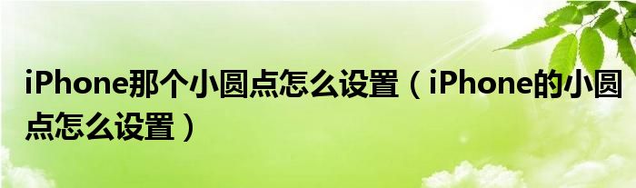 关于iPhone那个小圆点怎么设置,iPhone的小圆点怎么设置这个很多人还不知道,今天菲菲来为大家解答以上的问题,现在让我们一起来看看吧!