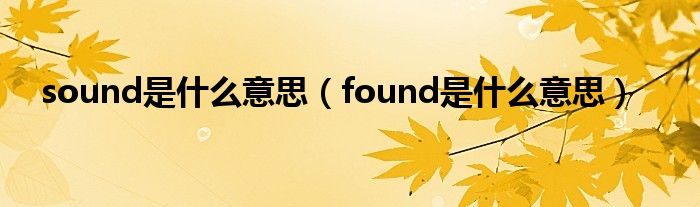 关于sound是什么意思,found是什么意思这个很多人还不知道,今天菲菲来为大家解答以上的问题,现在让我们一起来看看吧!