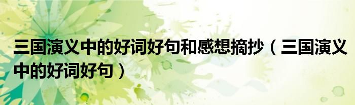关于三国演义中的好词好句和感想摘抄,三国演义中的好词好句这个很多人还不知道,今天菲菲来为大家解答以上的问题,现在让我们一起来看看吧!