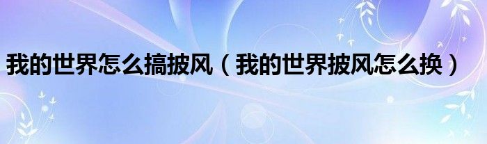 关于我的世界怎么搞披风,我的世界披风怎么换这个很多人还不知道,今天菲菲来为大家解答以上的问题,现在让我们一起来看看吧!