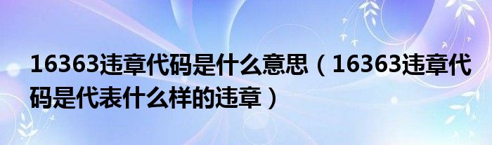 16363违章代码是什么意思(16363违章代码是代表什么样的违章)