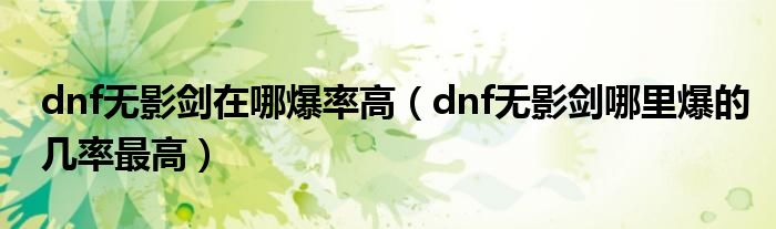 关于dnf无影剑在哪爆率高,dnf无影剑哪里爆的几率最高这个很多人还不知道,今天菲菲来为大家解答以上的问题,现在让我们一起来看看吧!