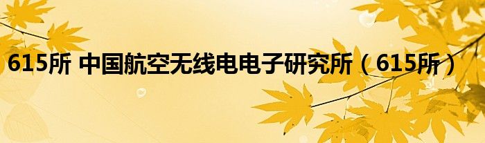 关于615所 中国航空无线电电子研究所,615所这个很多人还不知道,今天菲菲来为大家解答以上的问题,现在让我们一起来看看吧!