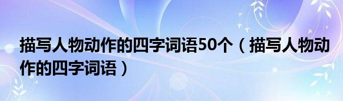 关于描写人物动作的四字词语50个,描写人物动作的四字词语这个很多人还不知道,今天菲菲来为大家解答以上的问题,现在让我们一起来看看吧!