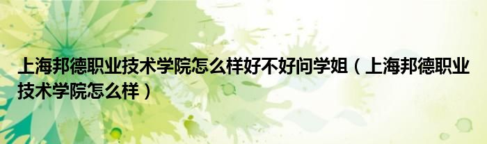 上海邦德职业技术学院怎么样好不好问学姐(上海邦德职业技术学院怎么样)