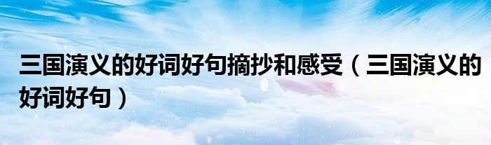 关于三国演义的好词好句摘抄和感受,三国演义的好词好句这个很多人还不知道,今天菲菲来为大家解答以上的问题,现在让我们一起来看看吧!