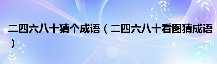 大家好,小晋来为大家解答以下问题,关于二四六八十猜个成语,二四六八十看图猜成语很多人还不知道,今天让我们一起来看看吧!