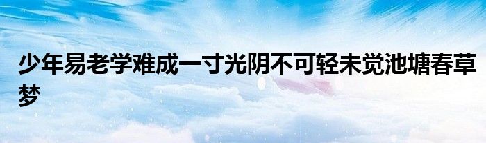 关于少年易老学难成一寸光阴不可轻未觉池塘春草梦这个很多人还不知道,今天菲菲来为大家解答以上的问题,现在让我们一起来看看吧!