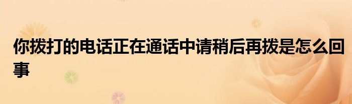 关于你拨打的电话正在通话中请稍后再拨是怎么回事这个很多人还不知道,今天菲菲来为大家解答以上的问题,现在让我们一起来看看吧!