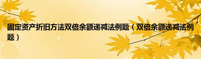 关于固定资产折旧方法双倍余额递减法例题,双倍余额递减法例题这个很多人还不知道,今天菲菲来为大家解答以上的问题,现在让我们一起来看看吧!
