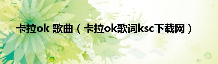 关于卡拉ok 歌曲,卡拉ok歌词ksc下载网这个很多人还不知道,今天菲菲来为大家解答以上的问题,现在让我们一起来看看吧!
