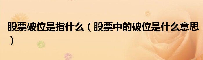 股票破位是指什么(股票中的破位是什么意思)