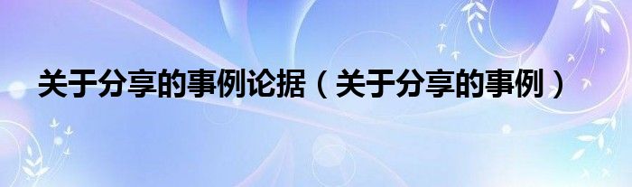 关于关于分享的事例论据,关于分享的事例这个很多人还不知道,今天菲菲来为大家解答以上的问题,现在让我们一起来看看吧!