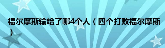 福尔摩斯输给了哪4个人(四个打败福尔摩斯)