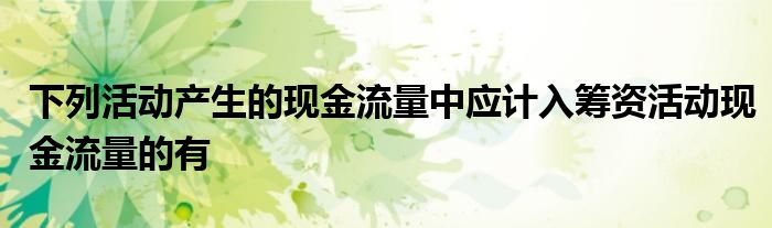 关于下列活动产生的现金流量中应计入筹资活动现金流量的有这个很多人还不知道,今天菲菲来为大家解答以上的问题,现在让我们一起来看看吧!