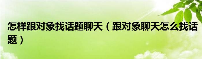 关于怎样跟对象找话题聊天,跟对象聊天怎么找话题这个很多人还不知道,今天菲菲来为大家解答以上的问题,现在让我们一起来看看吧!