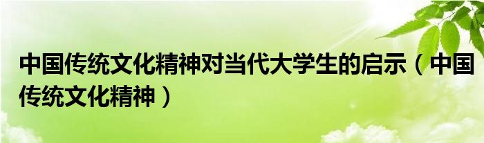 关于中国传统文化精神对当代大学生的启示,中国传统文化精神这个很多人还不知道,今天菲菲来为大家解答以上的问题,现在让我们一起来看看吧!