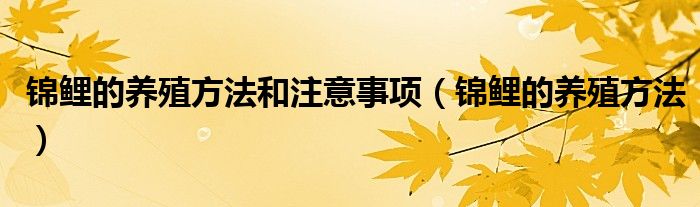 锦鲤的养殖方法和注意事项(锦鲤的养殖方法)