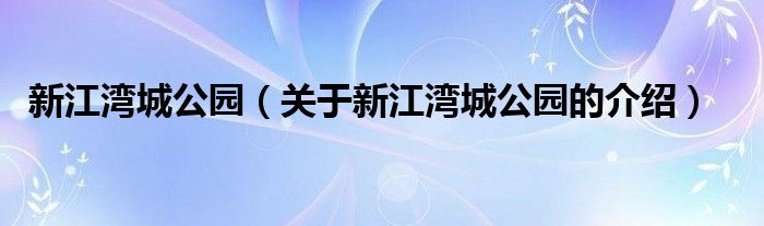 新江湾城公园(关于新江湾城公园的介绍)