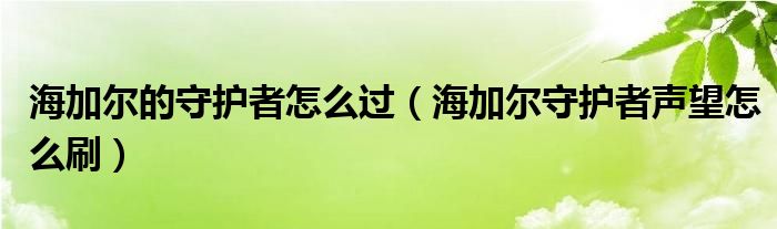 海加尔的守护者怎么过(海加尔守护者声望怎么刷)