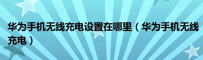 华为手机无线充电设置在哪里(华为手机无线充电)