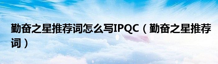 关于勤奋之星推荐词怎么写IPQC,勤奋之星推荐词这个很多人还不知道,今天菲菲来为大家解答以上的问题,现在让我们一起来看看吧!
