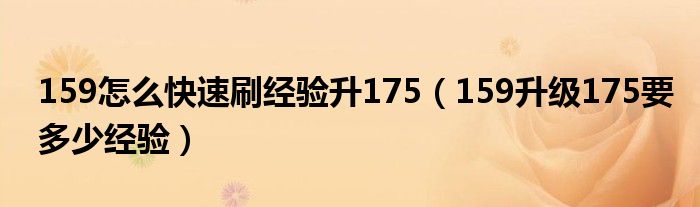 159怎么快速刷经验升175(159升级175要多少经验)