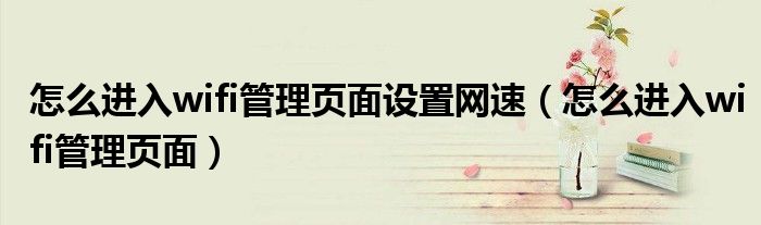 怎么进入wifi管理页面设置网速(怎么进入wifi管理页面)