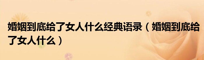 大家好,小晋来为大家解答以下问题,关于婚姻到底给了女人什么经典语录,婚姻到底给了女人什么很多人还不知道,今天让我们一起来看看吧!