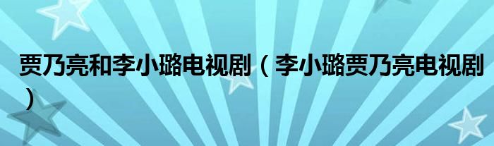 贾乃亮和李小璐电视剧(李小璐贾乃亮电视剧)