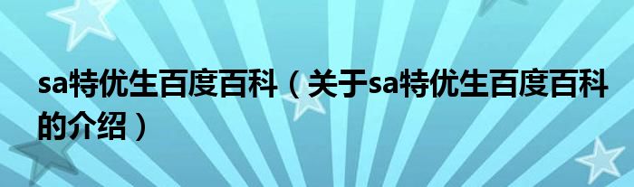 sa特优生百度百科(关于sa特优生百度百科的介绍)