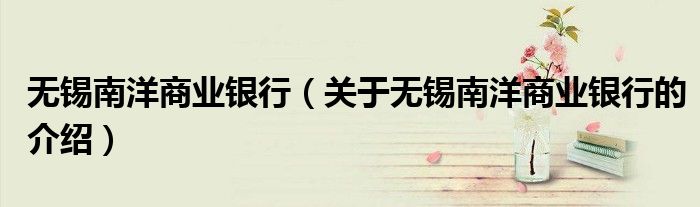 无锡南洋商业银行(关于无锡南洋商业银行的介绍)