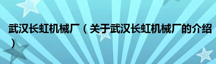 大家好,今天小乐来为大家解答以上的问题。武汉长虹机械厂,关于武汉长虹机械厂的介绍很多人还不知道,现在让我们一起来看看吧!