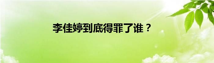 李佳婷到底得罪了谁?