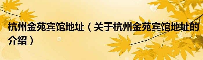 大家好,今天小乐来为大家解答以上的问题。杭州金苑宾馆地址,关于杭州金苑宾馆地址的介绍很多人还不知道,现在让我们一起来看看吧!