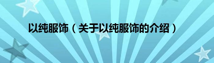 大家好,小都来为大家解答以上的问题。以纯服饰,关于以纯服饰的介绍很多人还不知道,现在让我们一起来看看吧!