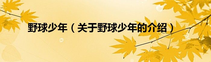 大家好,小都来为大家解答以上的问题。野球少年,关于野球少年的介绍很多人还不知道,现在让我们一起来看看吧!