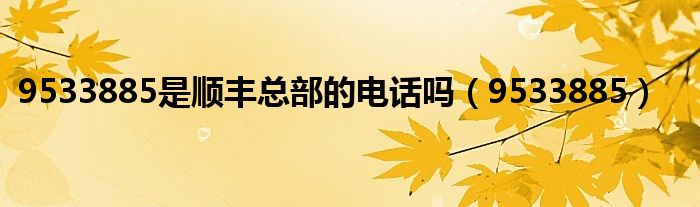 9533885是顺丰总部的电话吗(9533885)
