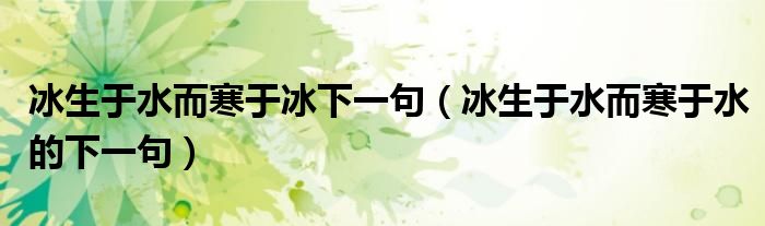 冰生于水而寒于冰下一句(冰生于水而寒于水的下一句)