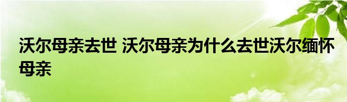 大家好.我是互联百科的羽儿,现在为大家解决以上沃尔母亲去世 沃尔母亲为什么去世沃尔缅怀母亲的问题.