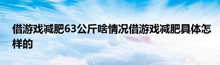 大家好.我是互联百科的羽儿,现在为大家解决以上借游戏减肥63公斤啥情况借游戏减肥具体怎样的的问题.
