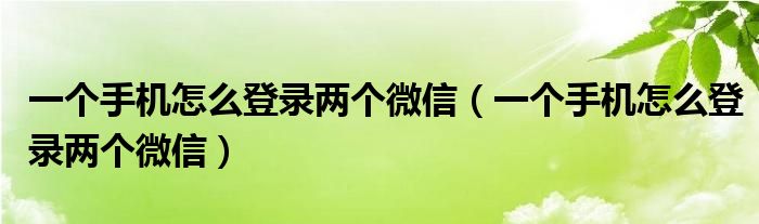 一个手机怎么登录两个微信(一个手机怎么登录两个微信)