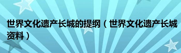 关于世界文化遗产长城的提纲,世界文化遗产长城资料这个很多人还不知道,今天菲菲来为大家解答以上的问题,现在让我们一起来看看吧!