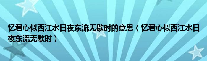 忆君心似西江水日夜东流无歇时的意思(忆君心似西江水日夜东流无歇时)