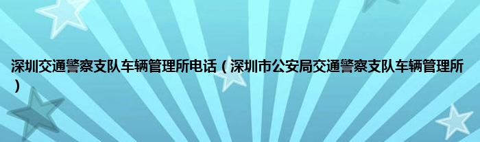 深圳交通警察支队车辆管理所电话(深圳市公安局交通警察支队车辆管理所)