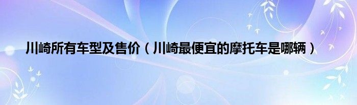 川崎所有车型及售价(川崎最便宜的摩托车是哪辆)